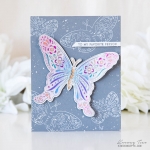 This set comes on a single 4x6 acetate sheet. The largest butterfly measures 3 7/8” wide and 3 1/8” high. The medium butterfly measures 3” wide and 1 3/8” high. The smallest butterfly measures 1 1/2” wide and 1 1/8” high. The small flourishes measure 1/2” wide and 1/2” high. The larger individual flowers measures approximately 1/2”. The smaller individual flowers measure 1/4” to 3/8”.
