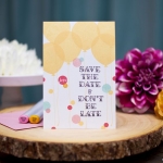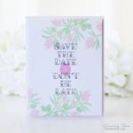 This set comes on a single 3” by 4” sheet. The “Save The Date” sentiment measures 1 1/16” x 1 1/8”. The “inflate” sentiment measures just over 5/8” x just over 1/4”. The ampersand medallion measures just under 5/8” in diameter. The exclamation point measures 1/8” x just under 3/8”.