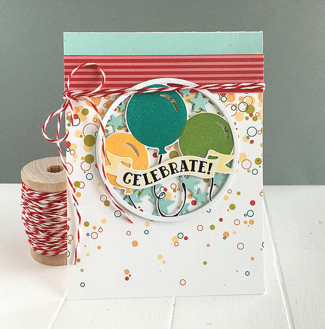 This set comes on a single 4x6 acetate sheet. The center balloon measures just over 1 1/4” wide and just under 1 1/2” high. The banner image measures 2 7/8” wide and 7/8” high. The “celebrate” sentiment measures 1 7/8” wide and 1/2” high. The large multi-star cluster measures just under 2 1/2” wide and 1” high.