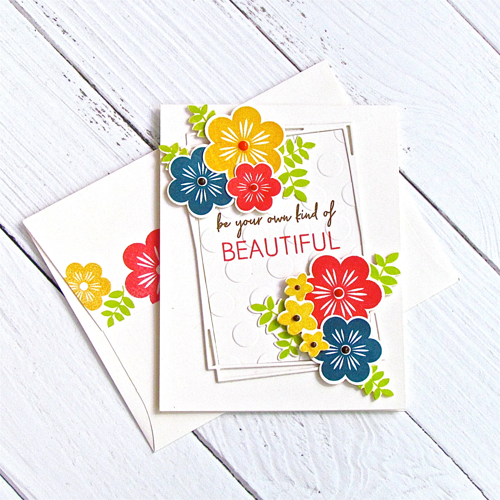 It’s A Sign: Beautiful is an inspiring sign making set that is filled with positive words and a beautiful woodgrain frame. The frame was created so the sentiments can fit perfectly inside. You could easily use the frame and sentiments all alone, but to make your project even more of an eye catcher, you could add flowers around it. With the coordinating die set, your options for creating are truly endless!